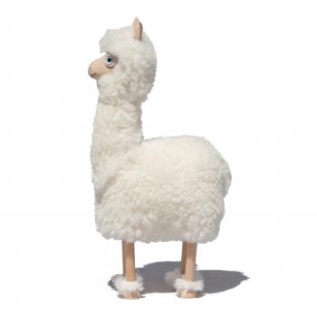 alpaka, mini, white wool plush, beech wood
